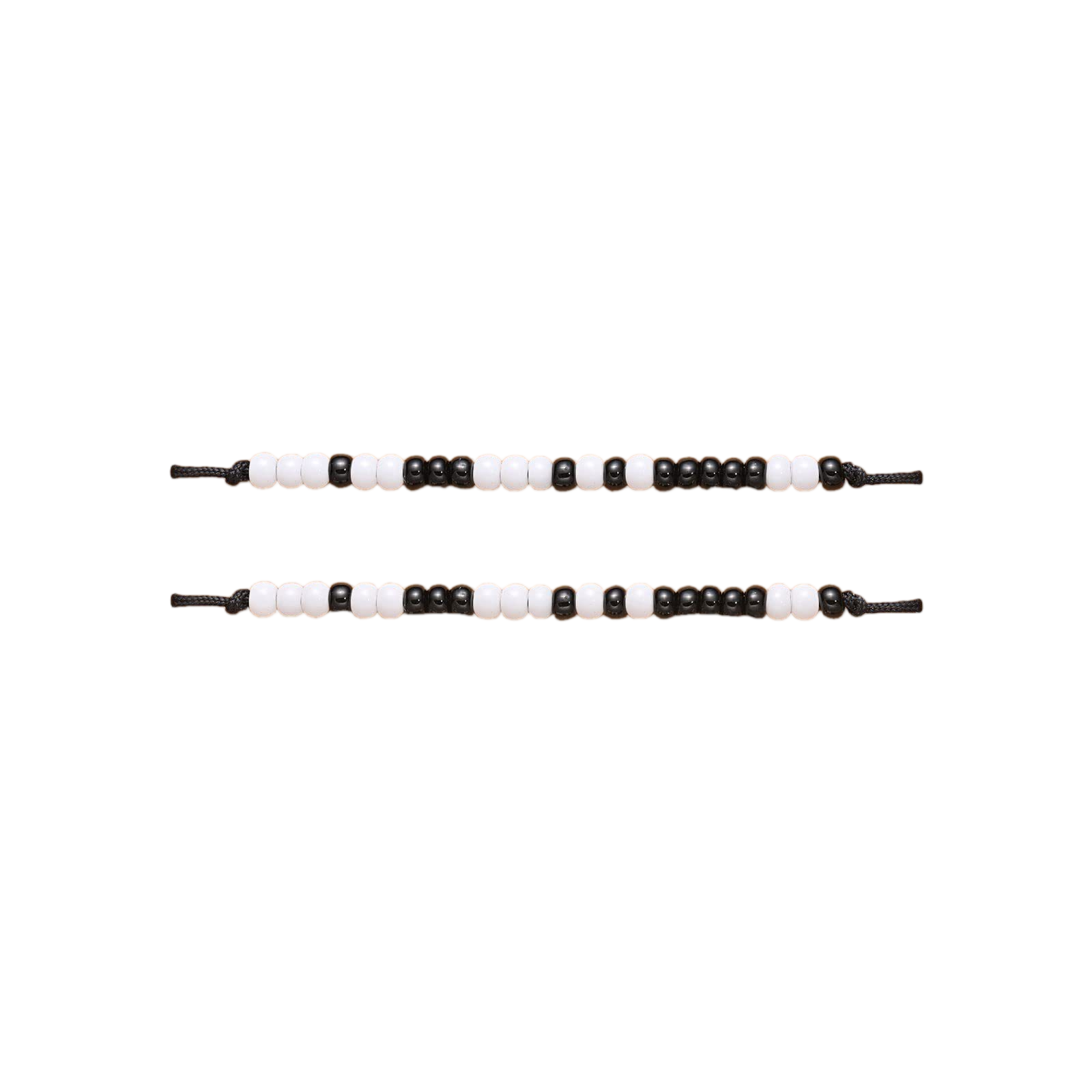 - Materials:black & white seed beads (acrylic) on durable cord